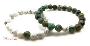 Les bracelets de couple les plus courants sont réalisés avec de la howlite , de l’agate noire ou de l’onyx non seulement pour la vertus de ces pierres mais également pour leur couleur.