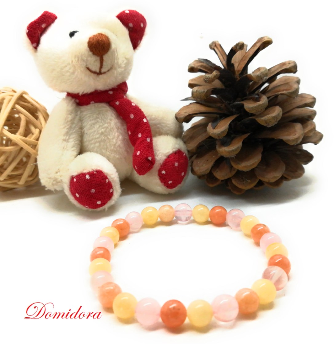 Bracelet Calcite et Quartz Rose, Pierres Naturelles Angoisses Enfants
