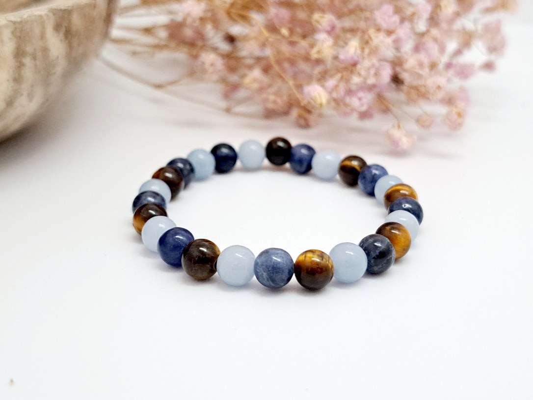 Bracelet Celestite et Sodalite, Pierres Naturelles Angoisses Enfant Ce bracelet enfant en célestite et oeil de tigre accompagne les enfants qui ont peur de se retrouver seuls et manquent de confiance en eux. 💎L’oeil de tigre réduit le stress et augmente la confiance en soi.Il forme un bouclier protecteur contre les énergies négatives.💎La célestite est recommandée… Lire la suite Bracelet Celestite et Sodalite, Pierres Naturelles Angoisses Enfant